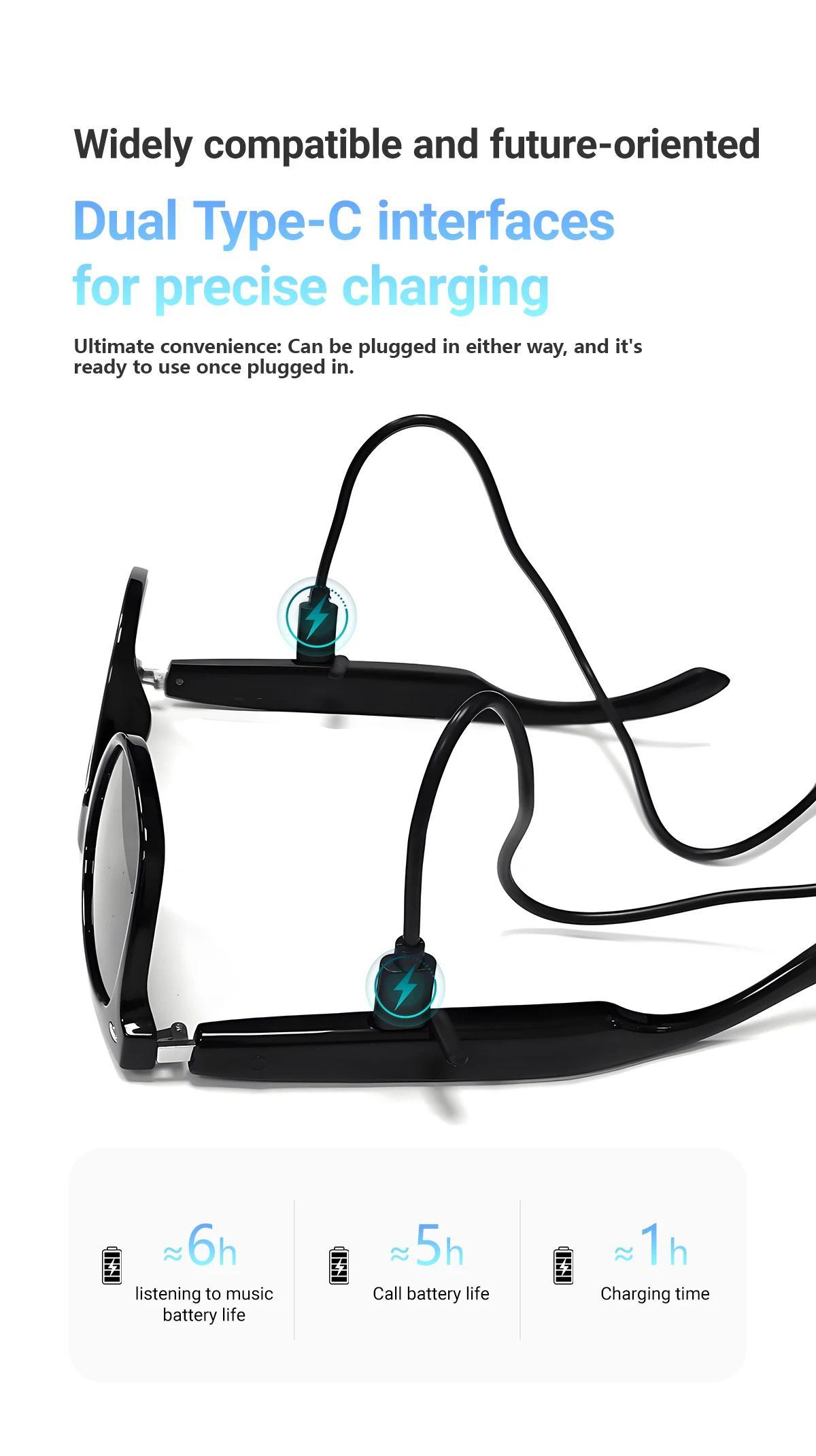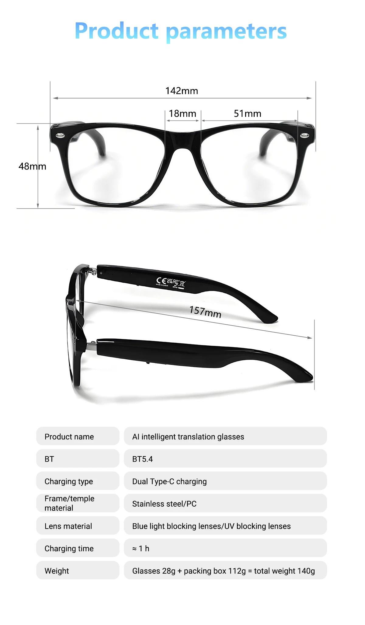 Smart Glasses AI translation 100+ Languages Make Receive Calls Music Calling Noise Reduction Light BT TWS Glasses Men Women