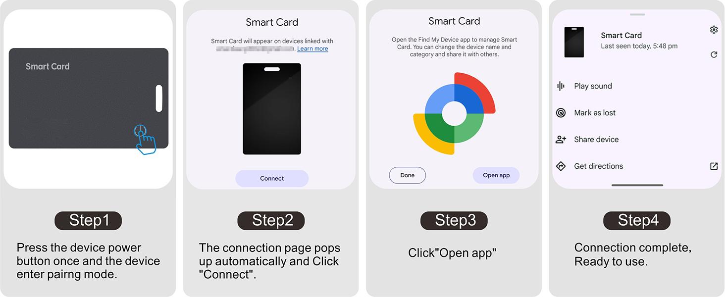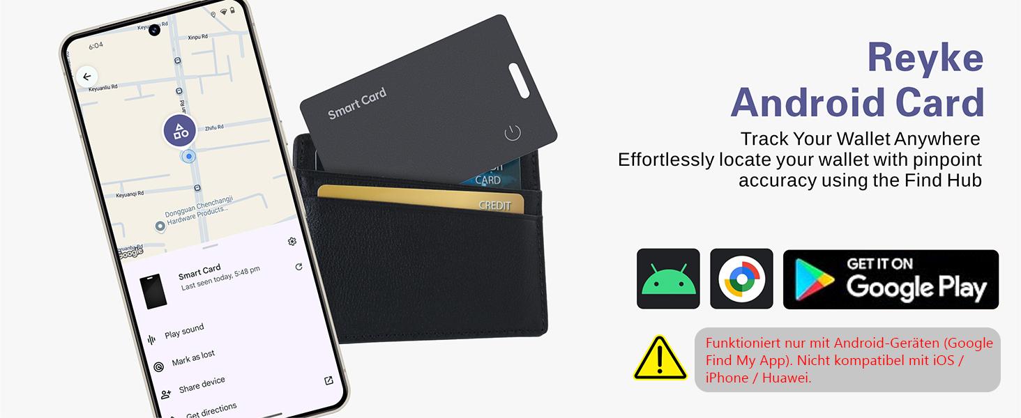 Compatible with Android devices ONLY: This tracking card is ONLY compatible with Google Find My Device (Find Hub) App on smartphones with Android operation system version 9 and above.
