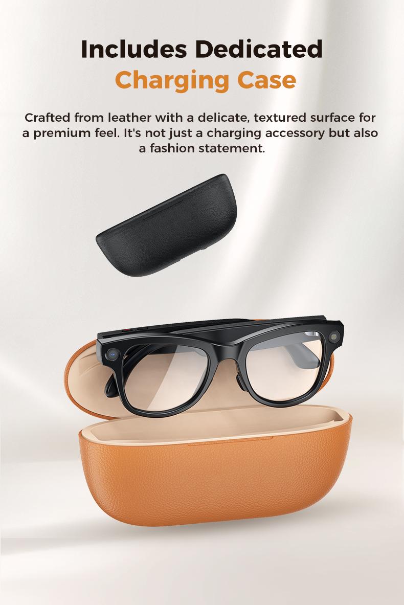 M02 AI Smart Glasses 8MP Camera Video Recording 100+Languages Translation Sunglasses Bluetooth Call Music Play with Charging Box