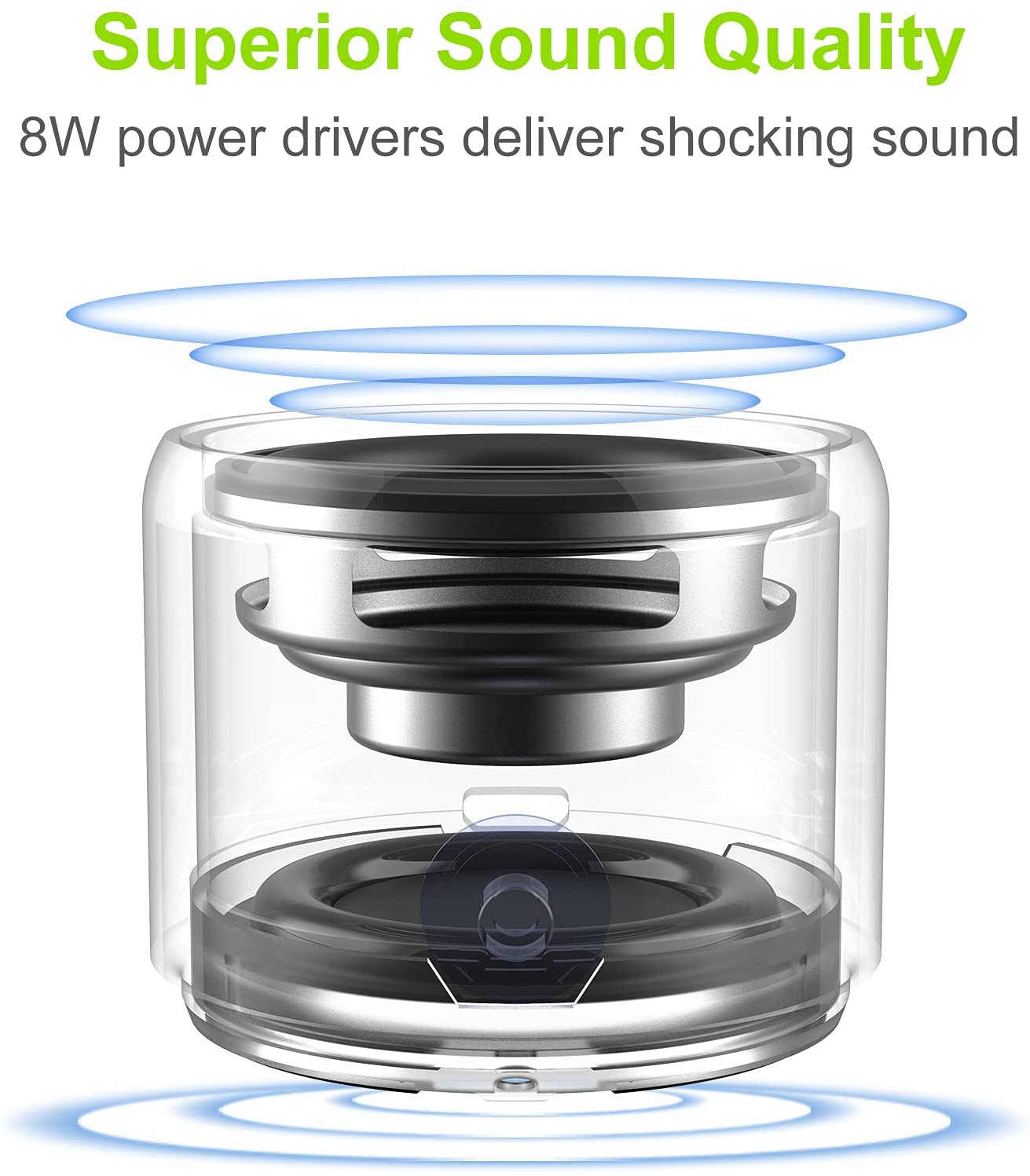 Louder Volume - 8W of audio power and passive subwoofer power for Bluetooth loud speaker, ensures powerful sound and pounding bass.