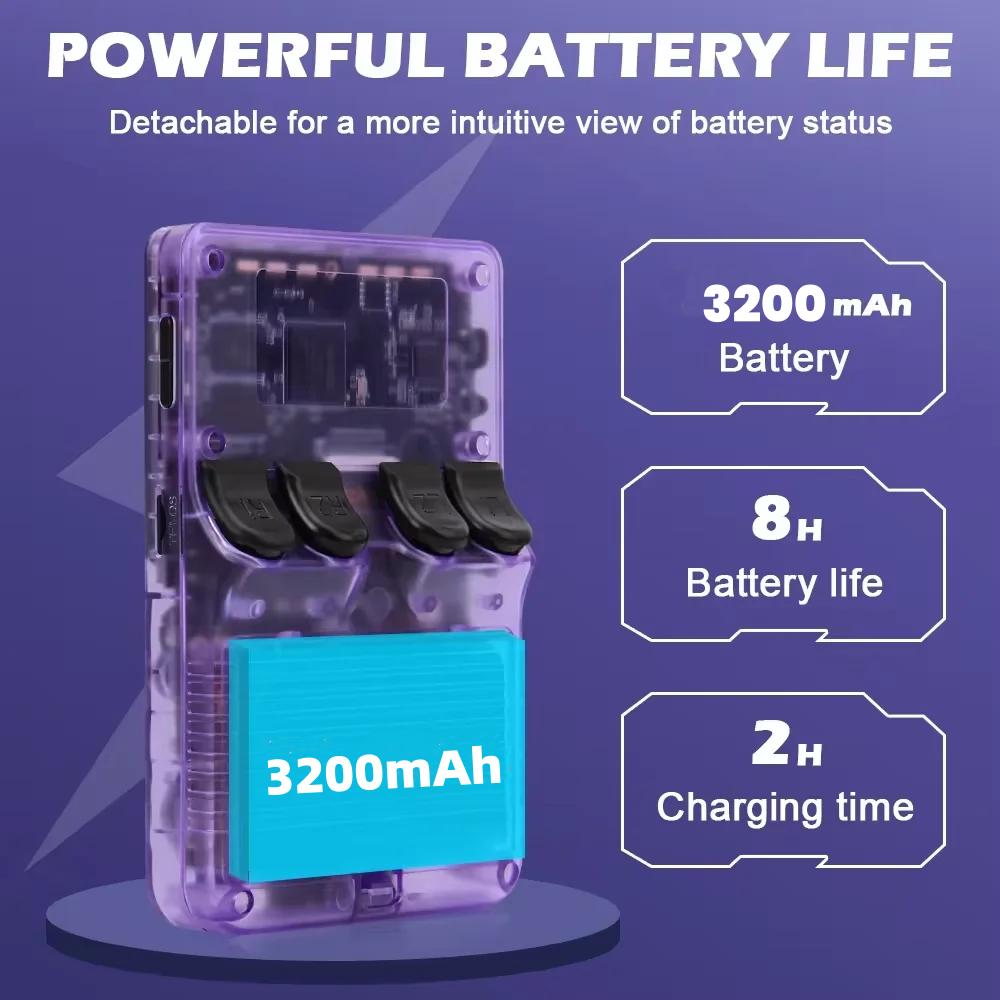 Enjoy extended playtime of 7-8 hours with the R36S, featuring a 3.5-inch IPS full-view screen with 640x480 resolution for an immersive gaming experience.