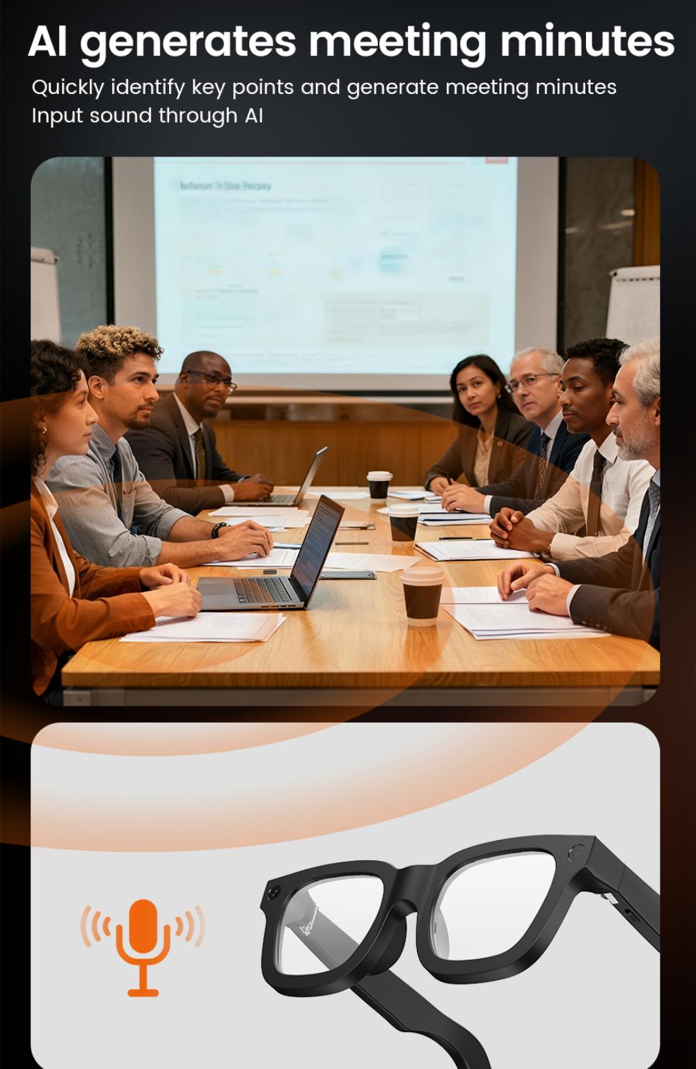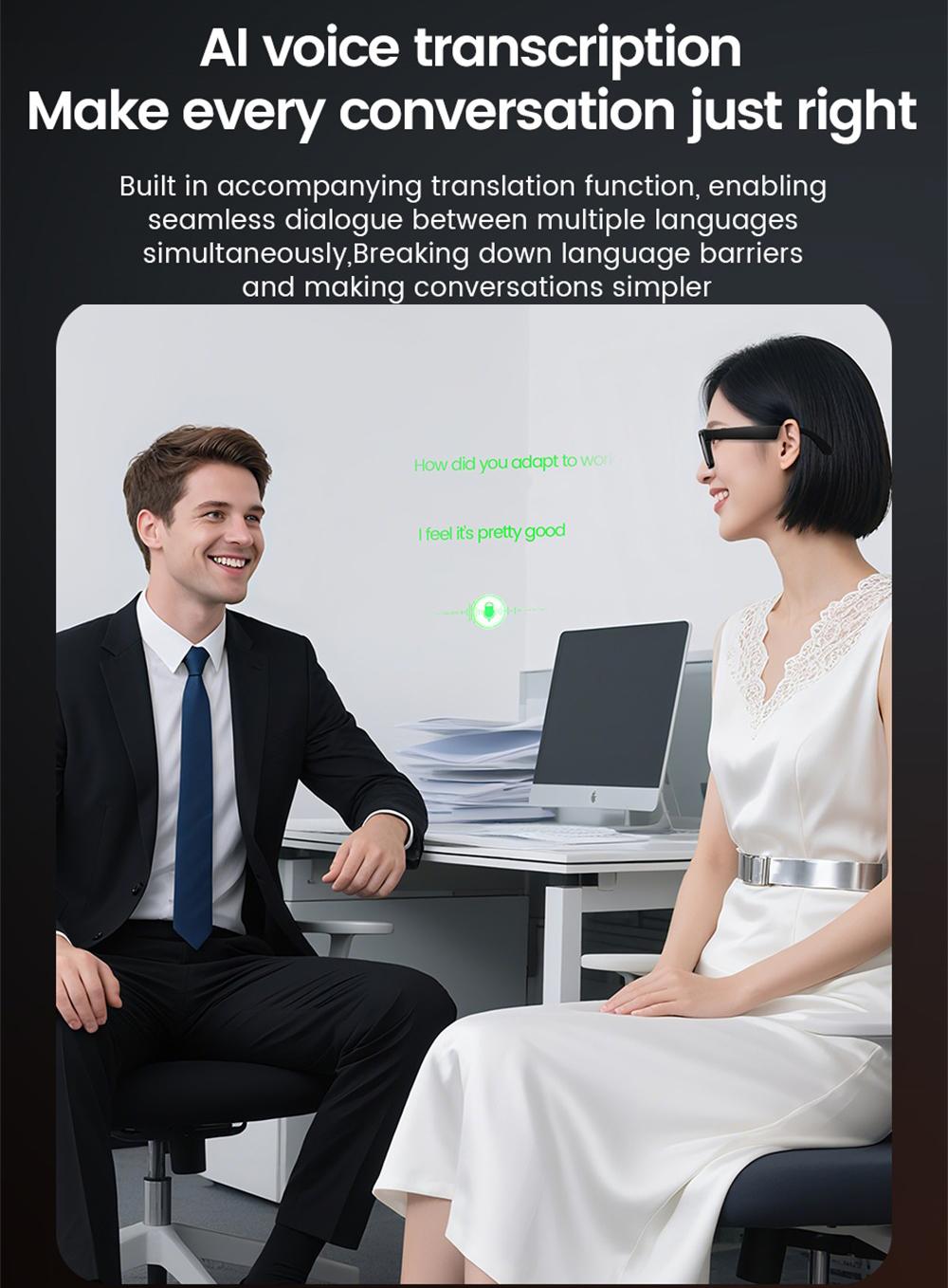 Introducing the AI Smart Glasses, featuring real-time translation and 800W camera. These eyewear offer Bluetooth calls, video, and music playback. Perfect for men and women, they integrate cutting-edge technology for a redefine visual experience. The glasses support Wi-Fi transmission and come with software anti-shake algorithm.