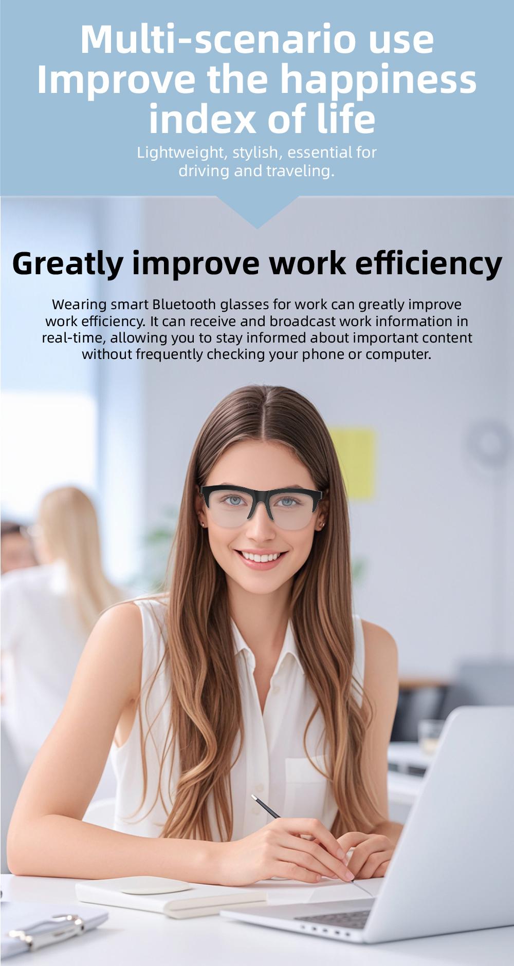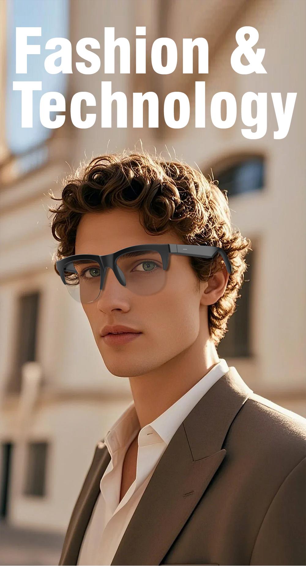 F02 Transparent Lens Bluetooth Audio Glasses | Open-Ear Speakers | Anti-Blue Light | Smart Touch Control | Office & Daily Use