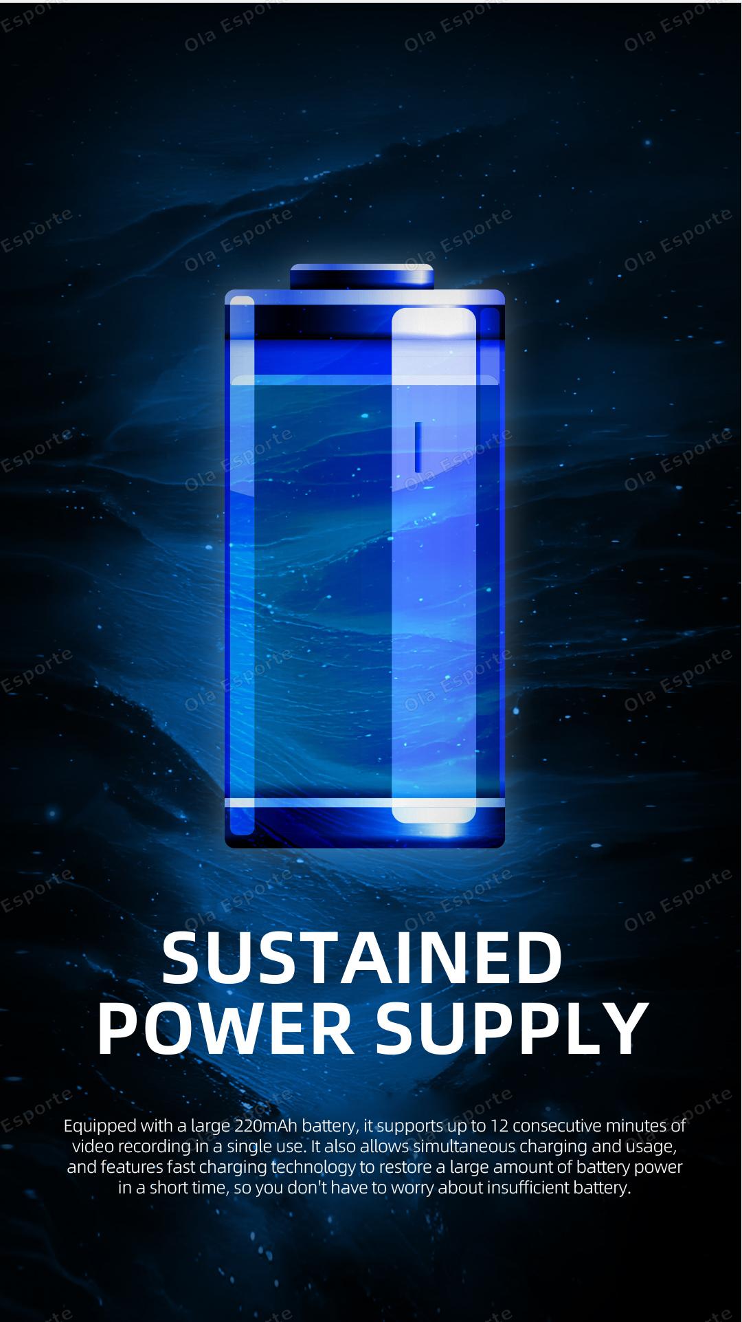 Exceptional Battery Life: Enjoy up to 12min of continuous video recording, 30 hours of non-stop music playback, or an impressive 120 hours (5 days) of daily standby time on a single charge. Supports charging while using, supports fast charging technology, can restore a large amount of power in a short time, so you don't need to worry about low power. Smart charging path management ensures safety and battery health.