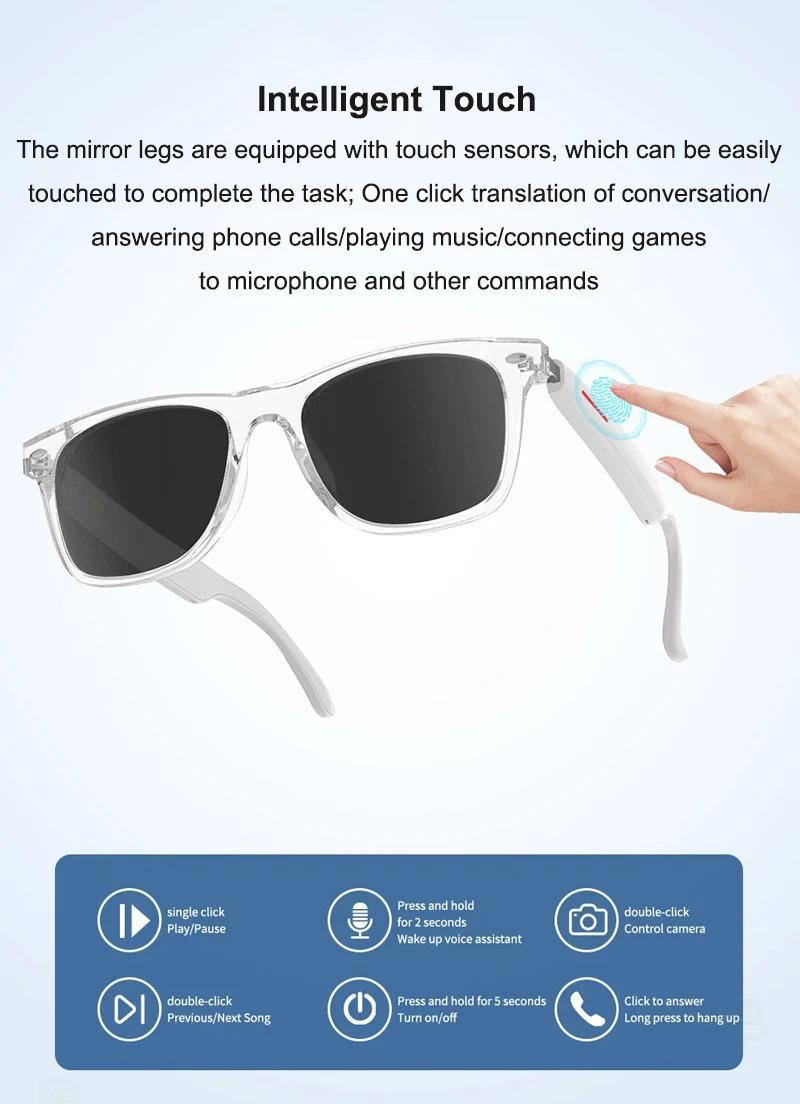 Features: * Real-time translation: Smart bluetooth translation glasses, automatically identify language types, and easily translate 144 languages. * Automatic pairing: No operation required, the temples can be easily paired automatically, remotely take photos, bluetooth audio calls, and wake up voice assistants. * Smart touch: The temples are equipped with touch sensors, and you can complete one-click translation conversations, answer calls, play music, play games, and other commands with just a light touch. * bluetooth calls: Built-in high-sensitivity microphones and noise reduction technology, you can answer, dial, hang up, and reject calls by tapping. * Voice control: AI intelligent voice dialogue function, just say a word, you can solve questions in work, study, and life, and easily help you find inspiration and answers. * IP65 waterproof: Precision structural design, worry-free wearing, easily adapt to various environments. Specification: : Smart Translation bluetooth Glasses Material: PC Battery capacity: 80+80 mAh Listening to music: 5 hours Language call: 4 hours Charging time: 1 hour Waterproof: IP65 Size: 16.6*6*5.5cm Color: as show Packing included: 1 * Smart Translation bluetooth Glasses 1 * Charging Cable Note: 1. Due to manual measurements and slight color variations, please allow 1-3 cm (0.4-1.18 inches) difference to suit different display settings. 2. Due to the light and screen difference, the item's color may be slightly different from the pictures. Please understand.