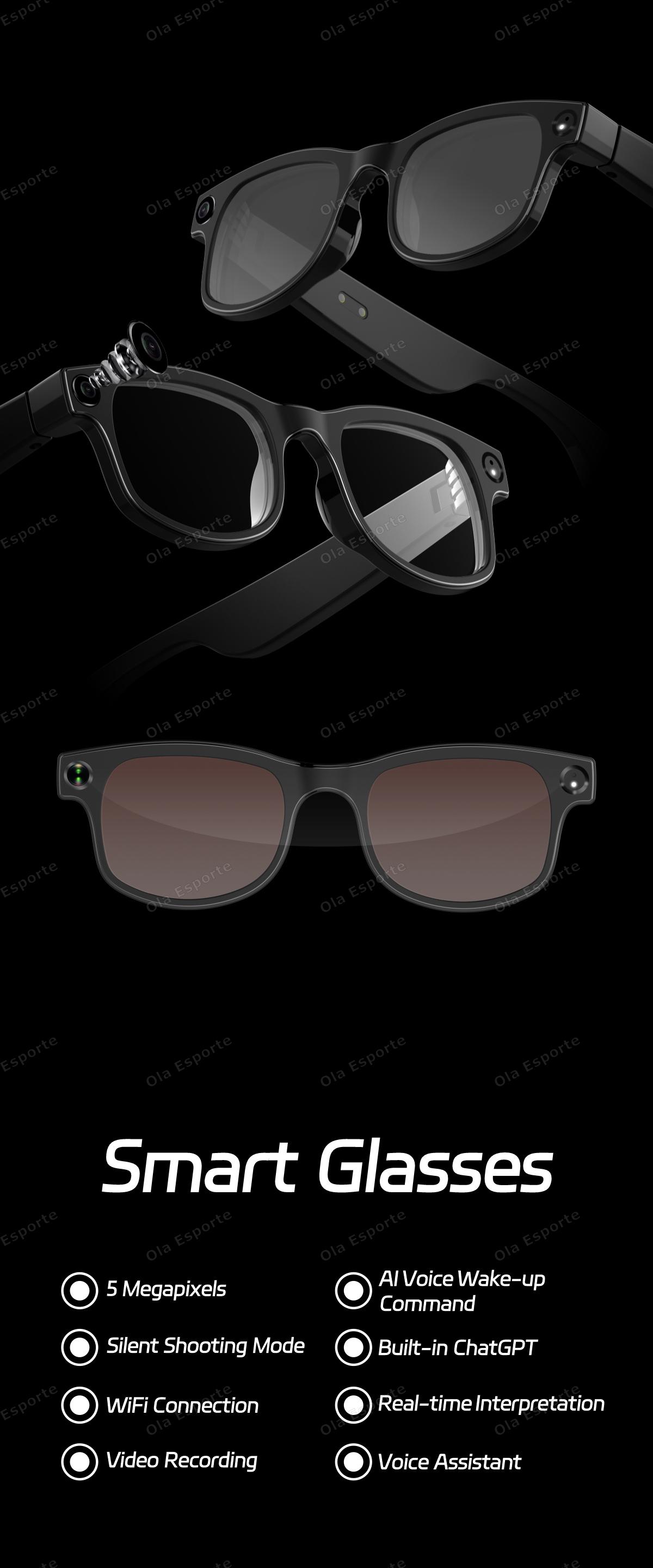 voice wake-up, music playback, music control, receiving calls, access to Chat GPT large model, look at the picture in kind, real-time translation, etc., shooting anti-shake, wifi transmission, dual-microphone noise reduction, single-point touch, Video recording, Photo taking, AI functions (ChatGPT, Image recognition, AI conversation, Translation), Audio recording and so on.