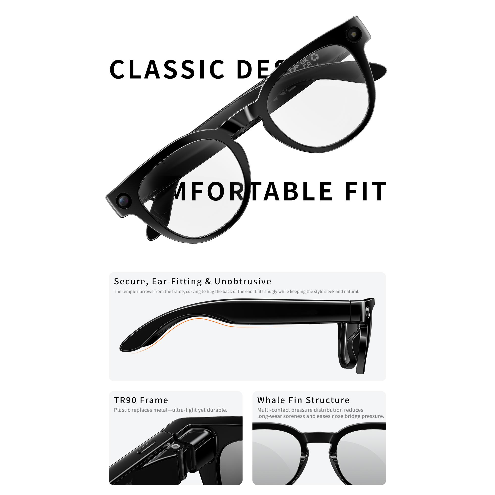 Smart Glasses with Camera Realtime AI Translation AI Assistant Hands Free Recording First Person View Video TypeC Charge Glasses
