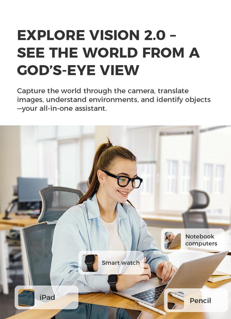 Main Functions : Wake up by voice, music playback, music control, receive calls, shooting, access to Chat GPT large model, see the picture in kind, real-time translation, etc., shooting anti-shake, wifi transmission, dual-microphone noise reduction, single-point touch, wear detection, etc.