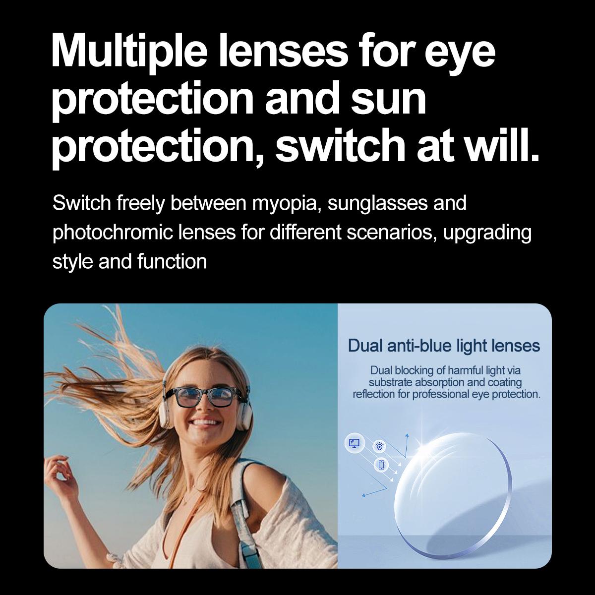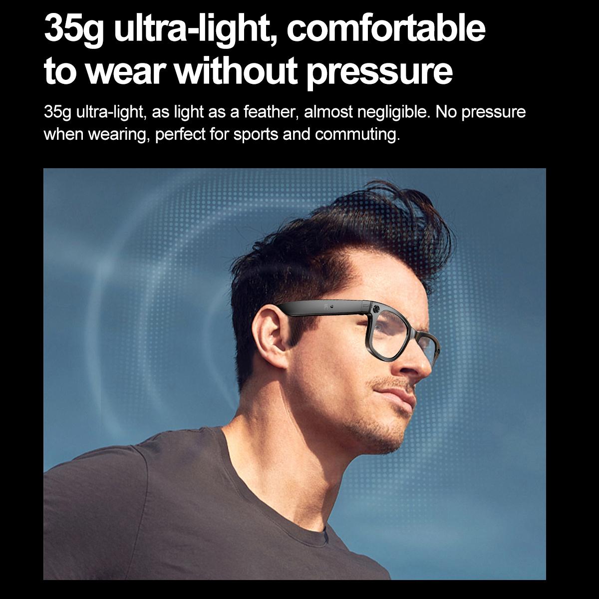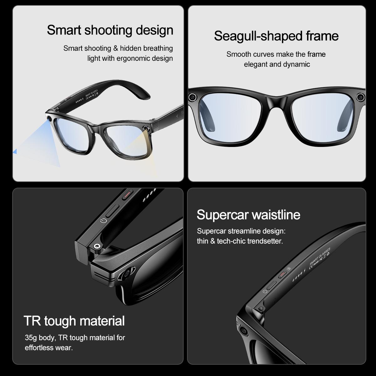 AI-Powered Interaction – Advanced ChatGPT integration for high-accuracy image recognition, AI dialogue, and question answering. Multimedia Functions – Take photos, record videos & audio, play local music (switch/pause tracks), and make Bluetooth calls. Ultra-Light & Comfortable – Only 35g with a sleek design, perfect for all-day wear. Customizable Lenses – Choose between sunglasses or blue-light-blocking lenses (myopia and other custom lenses available). Long Battery Life – 260mAh battery supports 2+ hours of continuous recording with ultra-low power consumption (no overheating). Dual Control System – Physical + touch buttons for easy operation. Durable & Resilient – IP65 dust/water resistance for daily protection.