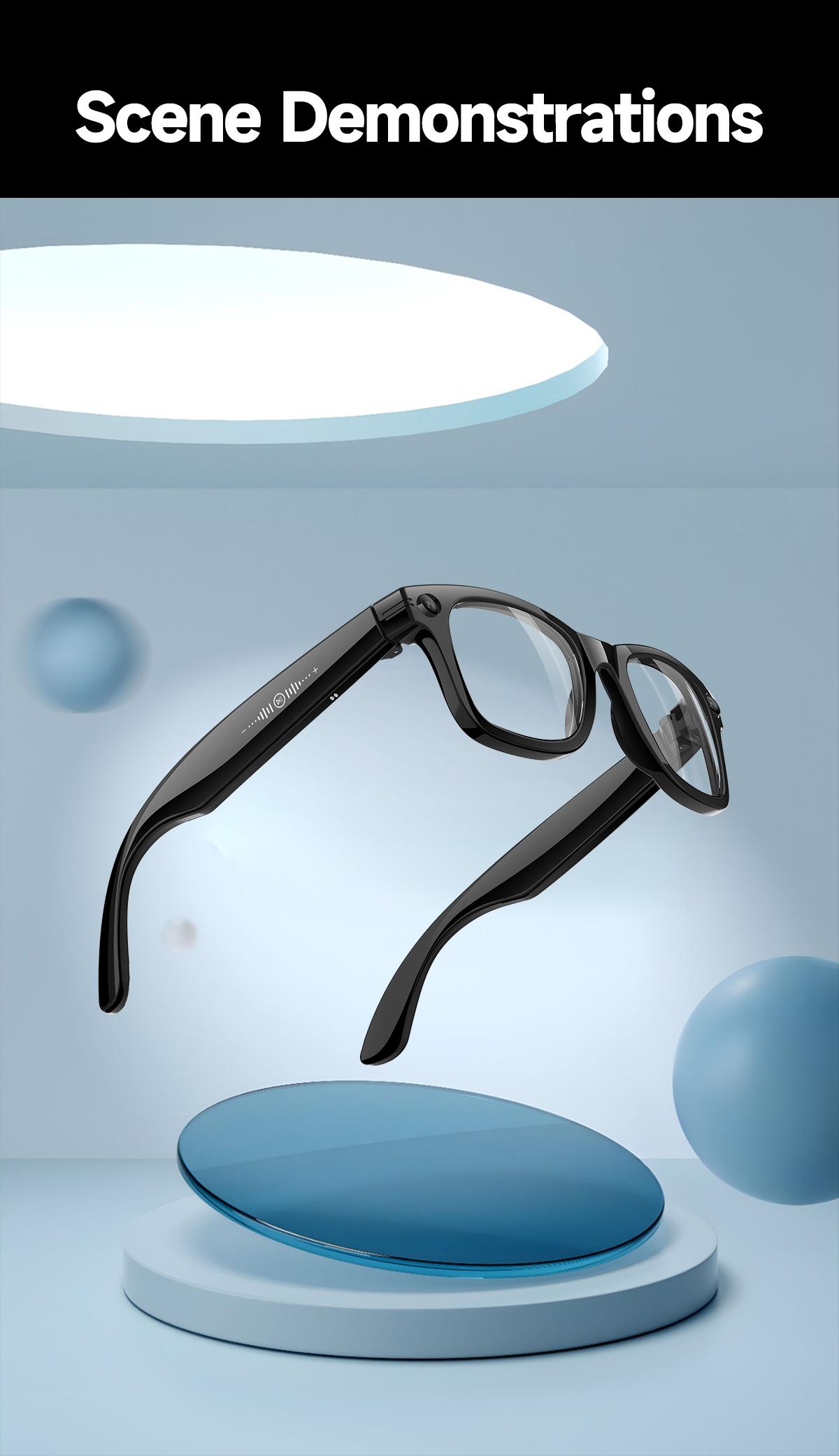 AI Camera & Video Smart Fashion Glasses: AI photo object recognition with answers, AI voice wake-up, AI intelligent Q&A interaction, and AI translation. It supports photography, video recording (with anti-shake function), and audio recording.