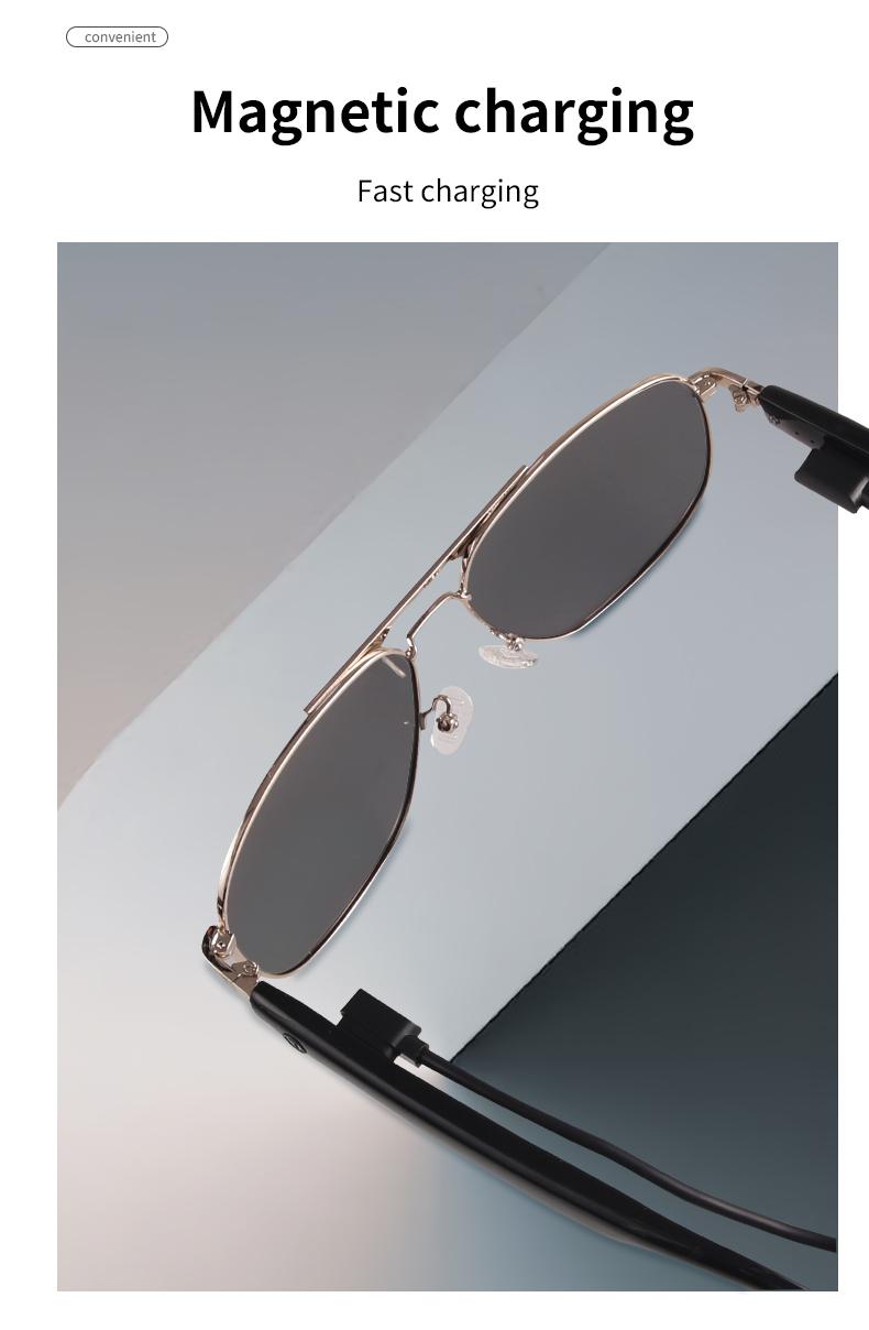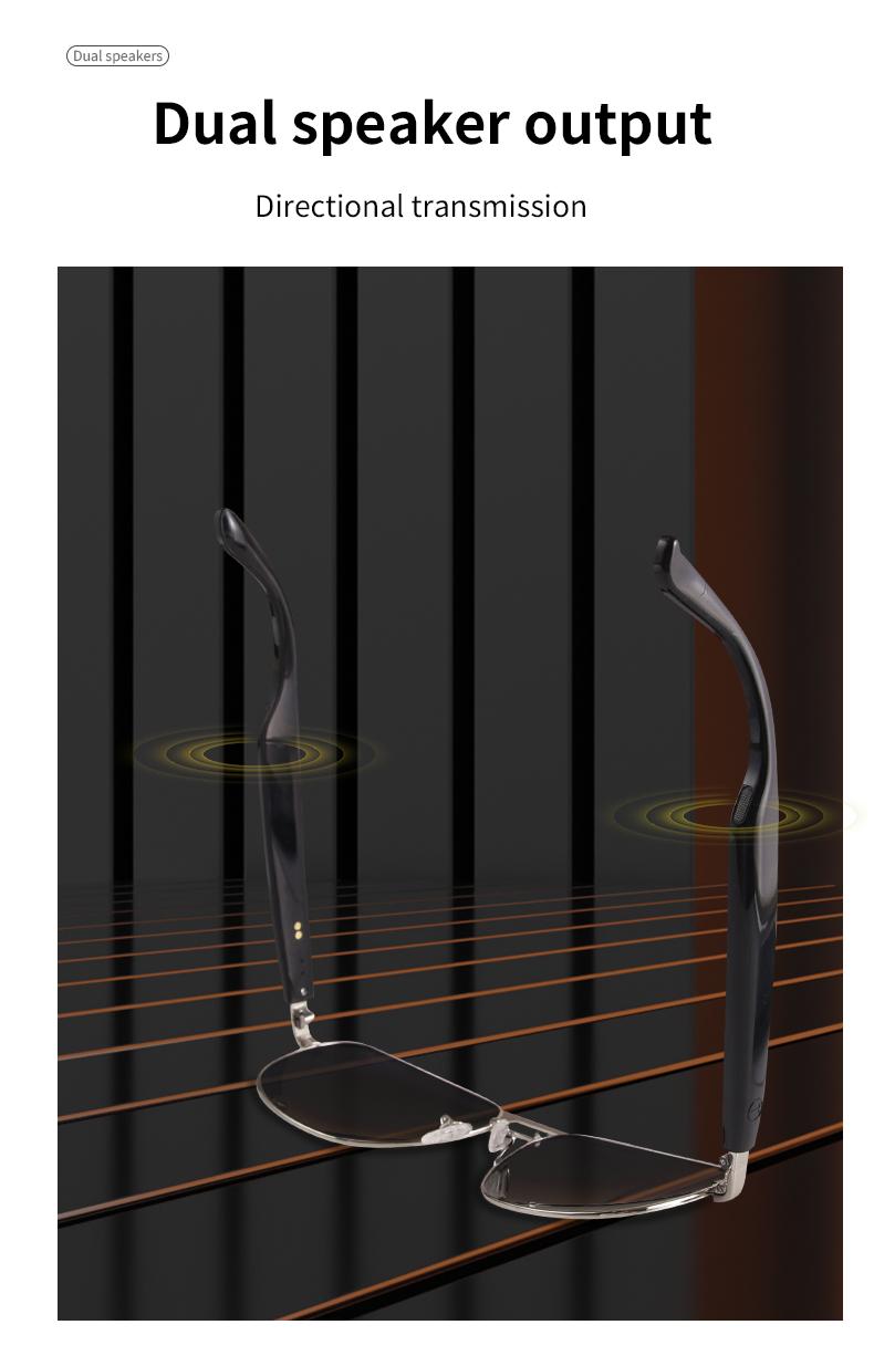 Main control chip:AB5656C  Battery:55mAh+55mAh Charging way:Magnetic charging Bluetooth version:BLE5.4 Bluetooth protocol:A2DP,HFP Mode of operation:Touch Transmission distance    :10M Waterproof level:Life waterproof Material    :ABS+PC+Metal Voltage    :DC5V Electric current:50mA*2 Play current (max volume)    :22mA Standby current:1mA Lens Material:PC coating Size    :162*68*50mm Weight    :Glasses 31g + packing box 110g = 138g Language;English USE CASE:Drive Cycling Mountain climbing Fishing Travel Businesst Daily LENS EFFECT :UV protection / UV400 / Anti-glare / wind and sand prevention / corrosion protection/ Anti-blue light Functions:Bluetooth calling/music playback/games/multi-style menu/voice assistant/weather/remote camera{need to be customized}